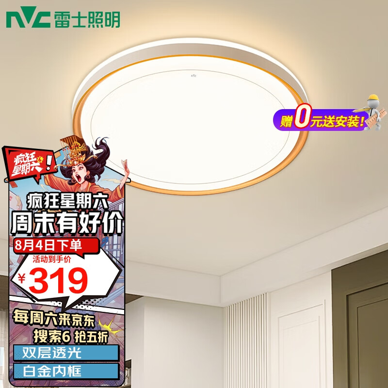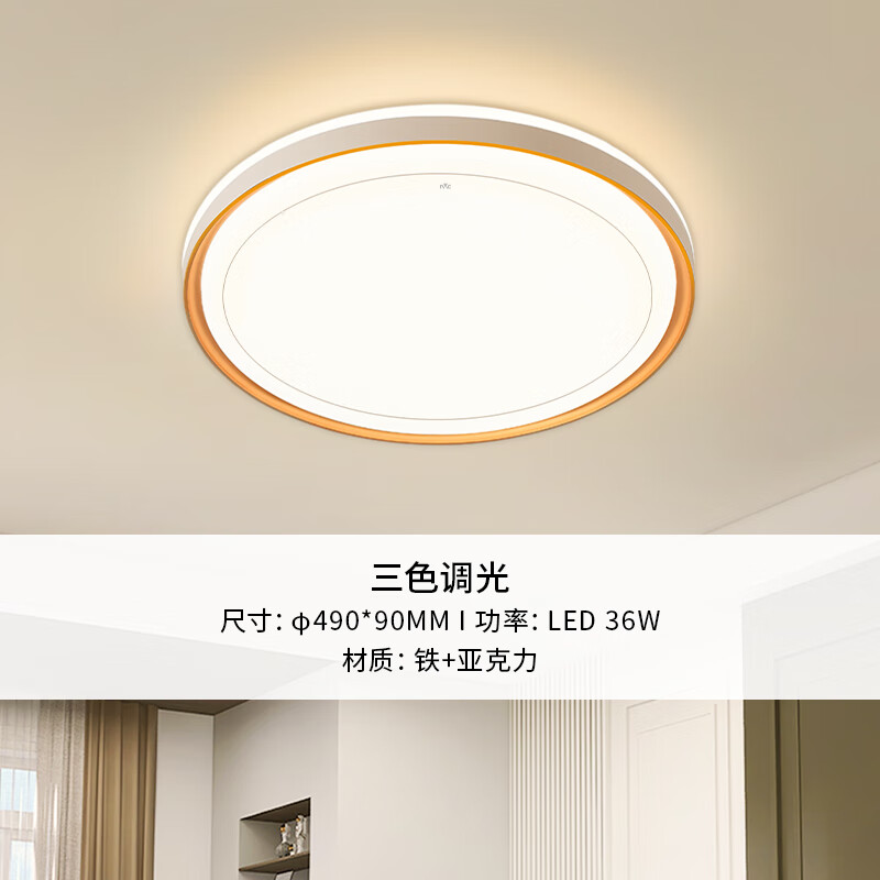 雷士(NVC)LED吸顶灯 现代简约风格书房卧室餐厅灯具 双层发光三色调光灯饰价格:319.00元!