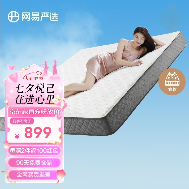 网易严选 弹簧床垫1.2米*2米 乳胶床垫 3D椰棕席梦思床垫 乳胶款价格:999.00元!