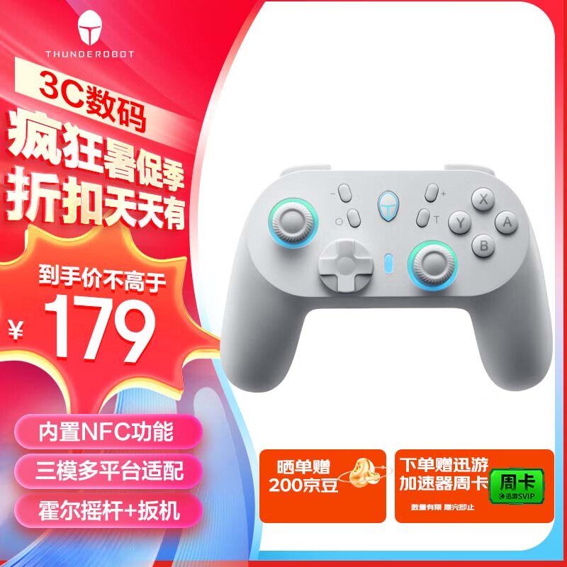 雷神(ThundeRobot)G45pro 无线蓝牙三模游戏手柄 Switch游戏手柄 支持NFC 霍尔摇杆霍尔扳机steam龙之信条价格:199.00元!