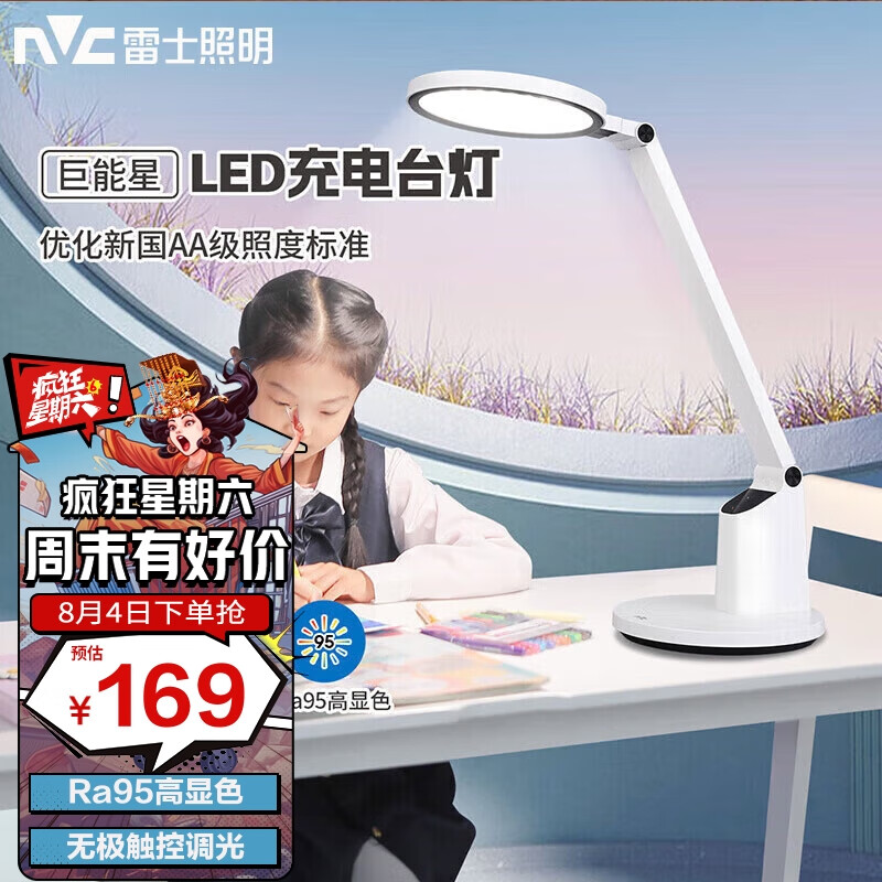 雷士(NVC) 国AA护眼宿舍卧室台灯智能学习儿童阅读灯宿舍卧室书房-充插两用价格:211.00元!