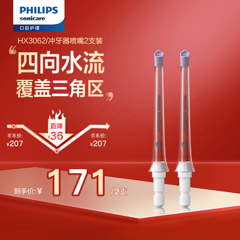 飞利浦 Sonicare 电动水牙线 四向水流喷嘴 HX3062/01价格:171.00元!