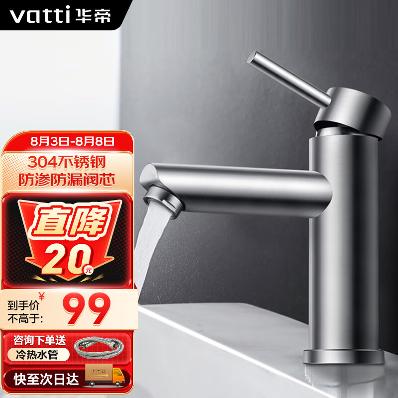 华帝(VATTI)304不锈钢拉丝工艺浴室水龙头 洗脸盆洗手盆冷热水龙头 041016价格:119.00元!