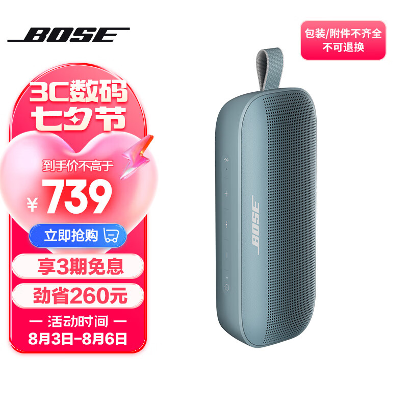 Bose Soundlink Flex 蓝牙音响-石墨蓝 户外防水便携式露营音箱/扬声器 七夕礼物送男友价格:739.00元!
