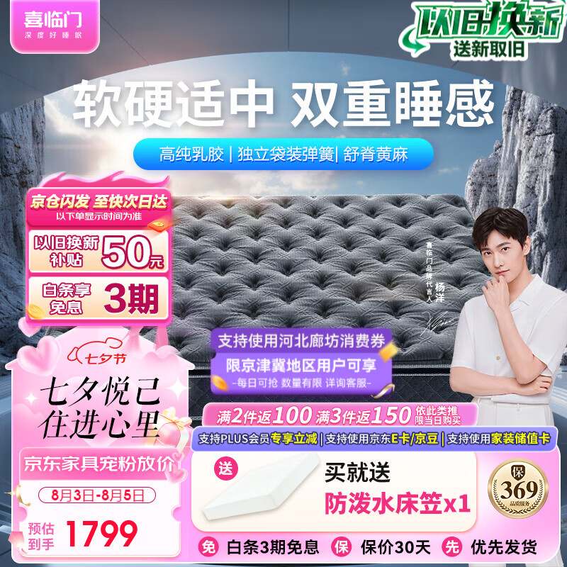 喜临门床垫 进口高纯乳胶 独立弹簧席梦思 黄麻垫 金星knight 1.8x2米价格:1999.00元!