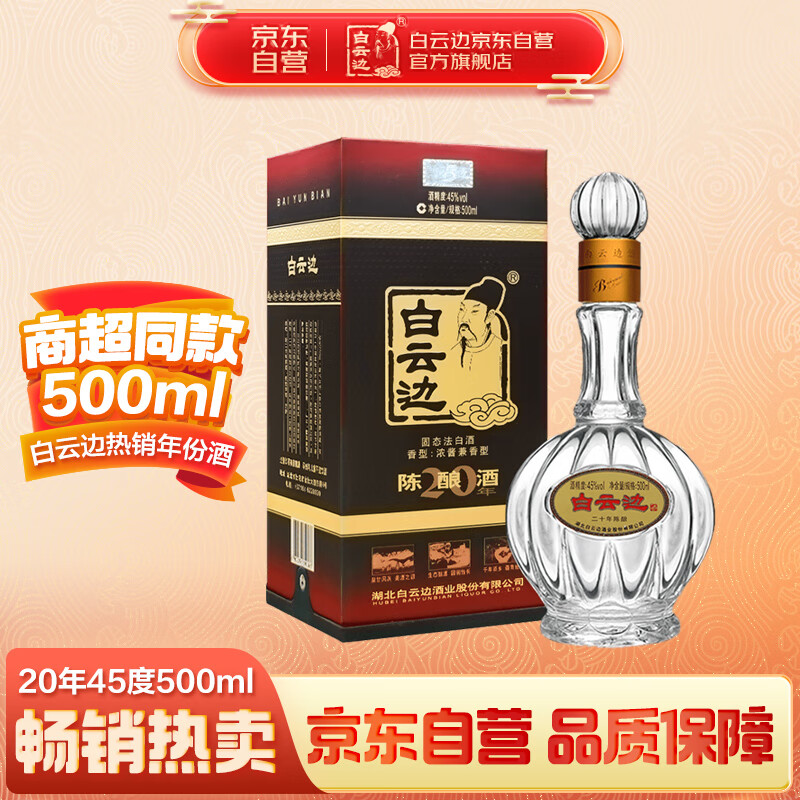 白云边二十年陈酿 浓酱兼香型白酒 45度 500ml 单瓶装价格:380.00元!