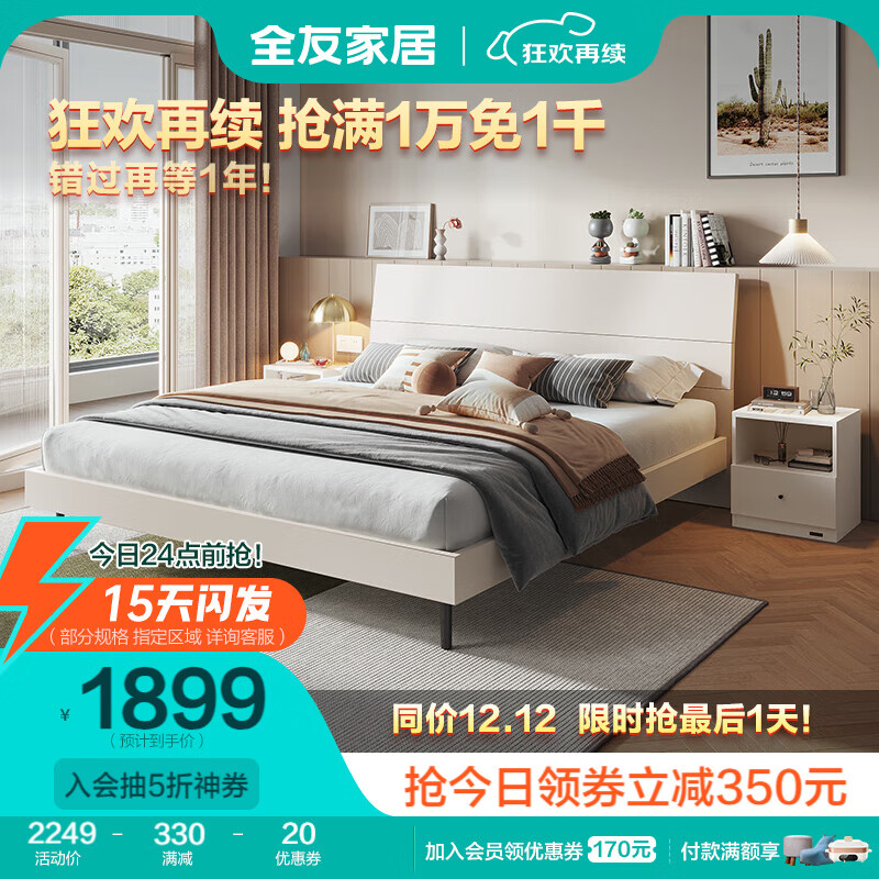 全友家居 床现代简约板式床双人床人体工学床屏大床主卧室家具106302价格:2249.00元!