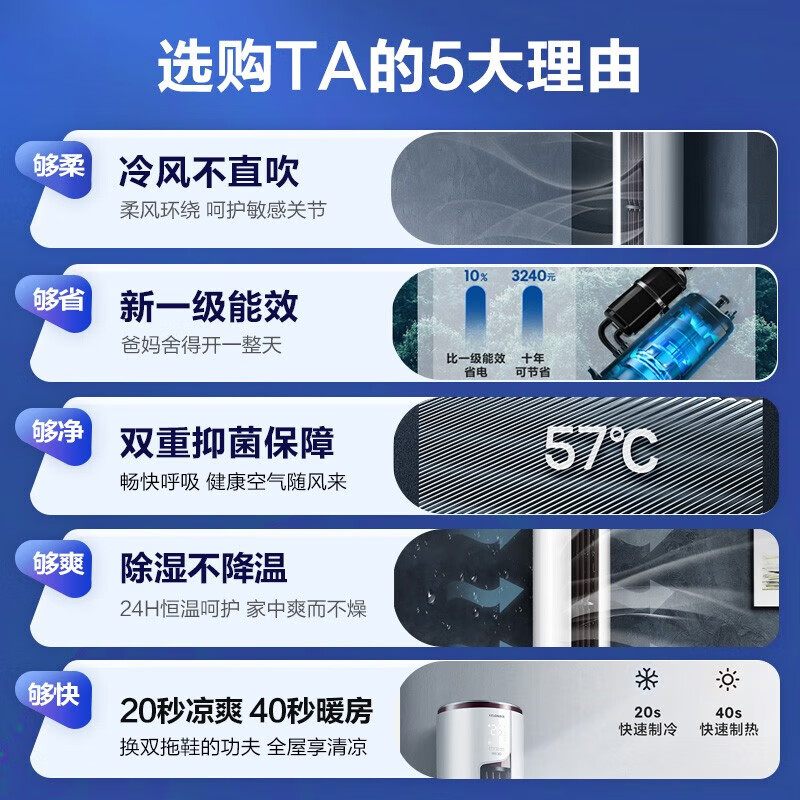科龙空调3匹立式新一级能效变频节能快速冷暖舒适柔风智能wifi低噪客厅柜机静美人KFR-72LW/EFLVA1价格:4399.00元!
