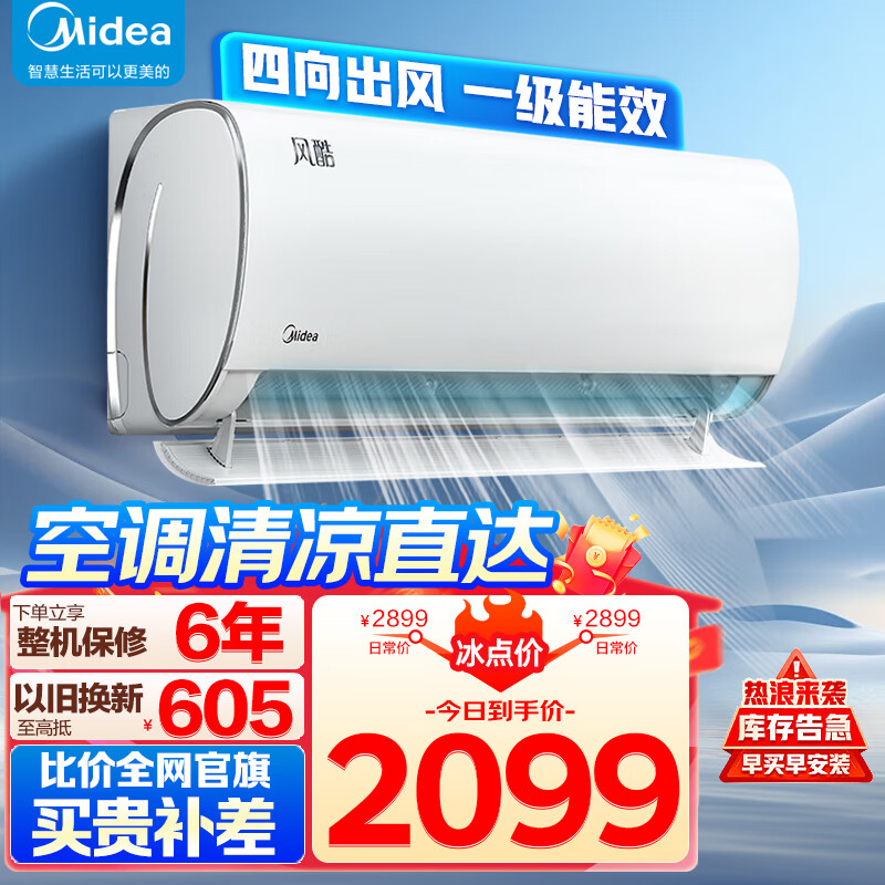 美的(Midea)空调风酷大1匹 新一级变频冷暖大风口自清洁家用壁挂式卧室挂机KFR-26GW/N8XHC1Ⅱ 多仓直发价格:2099.00元!