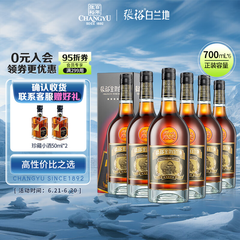 张裕 五星金奖白兰地 700ml*6瓶 整箱装 洋酒礼盒送礼价格:1068.00元!