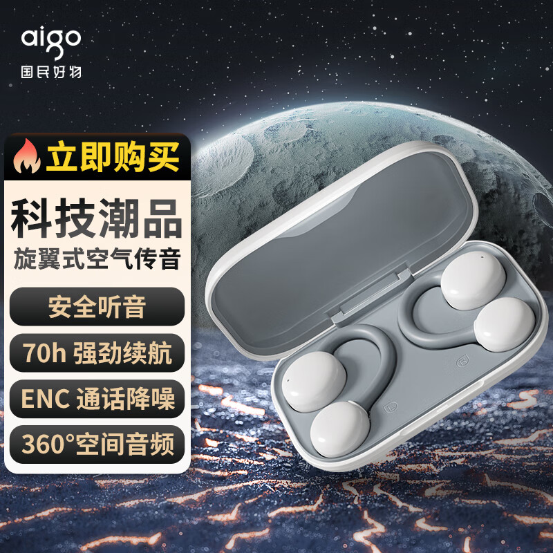 爱国者(aigo)TWS蓝牙耳机开放挂耳式 骨传导概念气传导耳机 运动骑行通话 长续航 适用手机平板电脑安卓SA06白价格:229.00元!