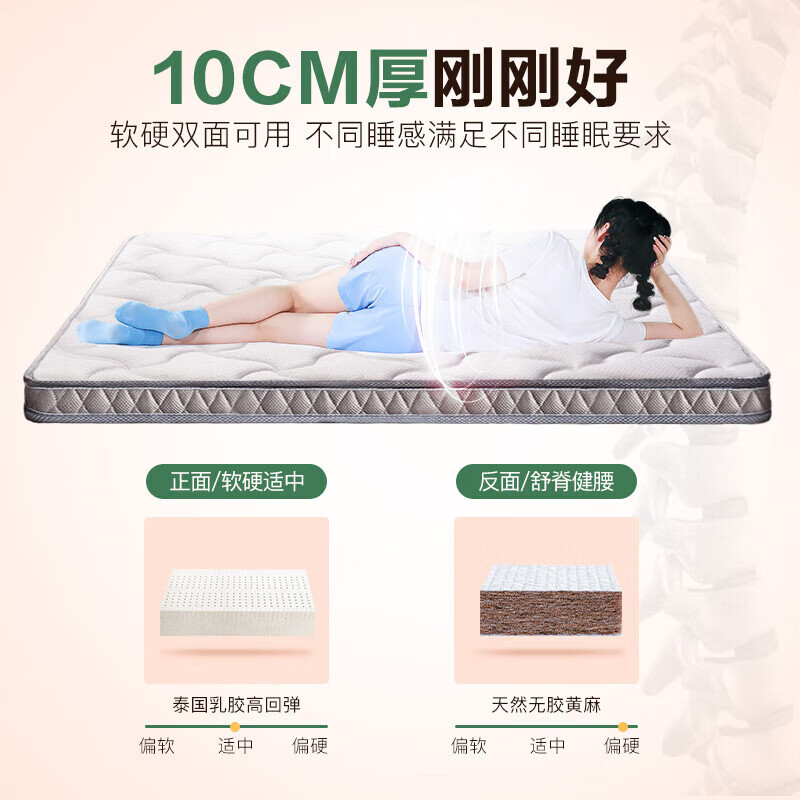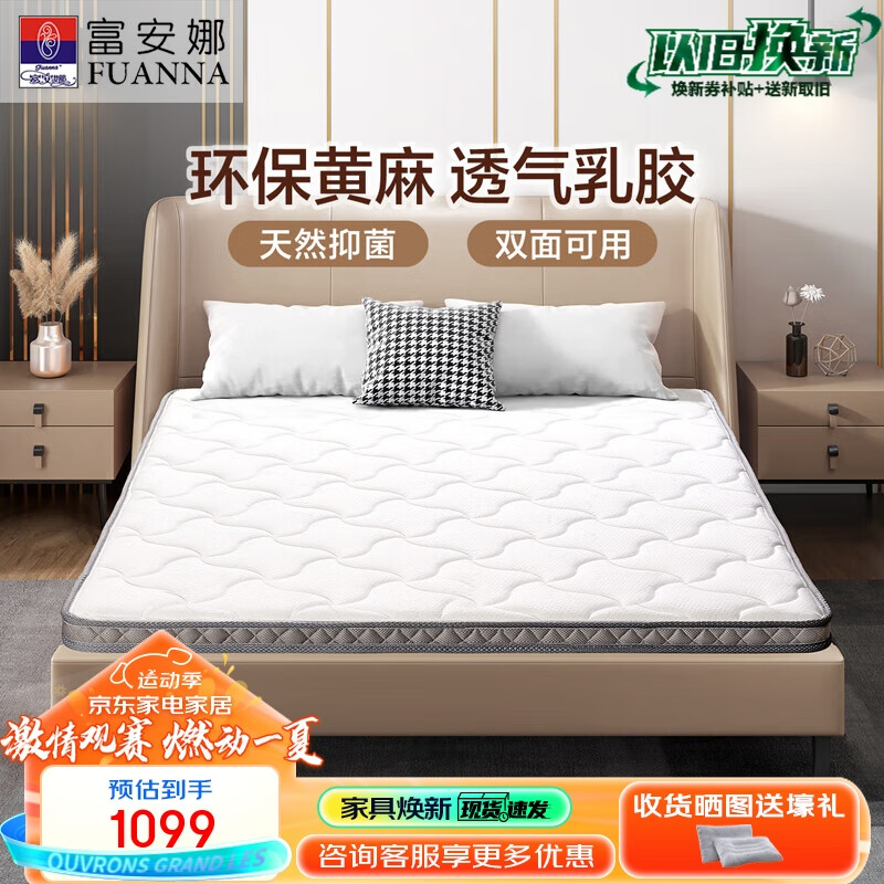 富安娜床垫 偏硬护脊 天然乳胶床垫防螨抗菌3D黄麻榻榻米薄床垫 1.2*2米价格:1259.00元!