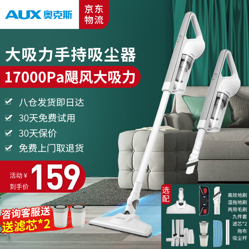 奥克斯(AUX)家用吸尘器手持地毯式低噪音小型迷你大功率强力吸尘器除尘机宠物家庭有线5米 AXS-927 白色版吸拖一体价格:189.00元!