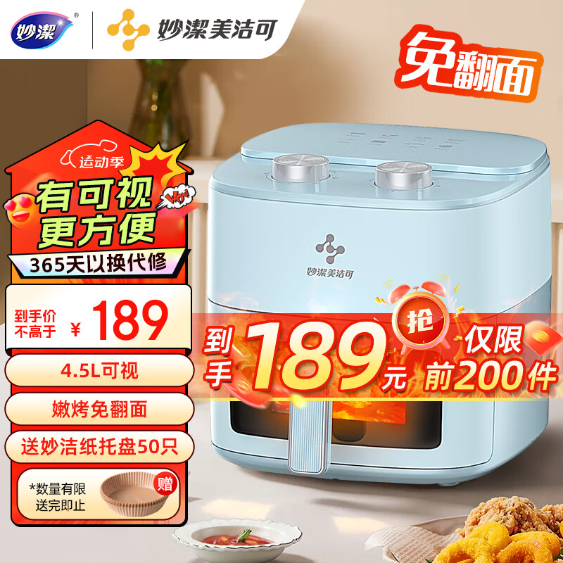妙洁美洁可空气炸锅大容量4.5升可视全自动不用翻面多功能电炸锅低脂无油烟不沾 K1 Pro价格:189.00元!