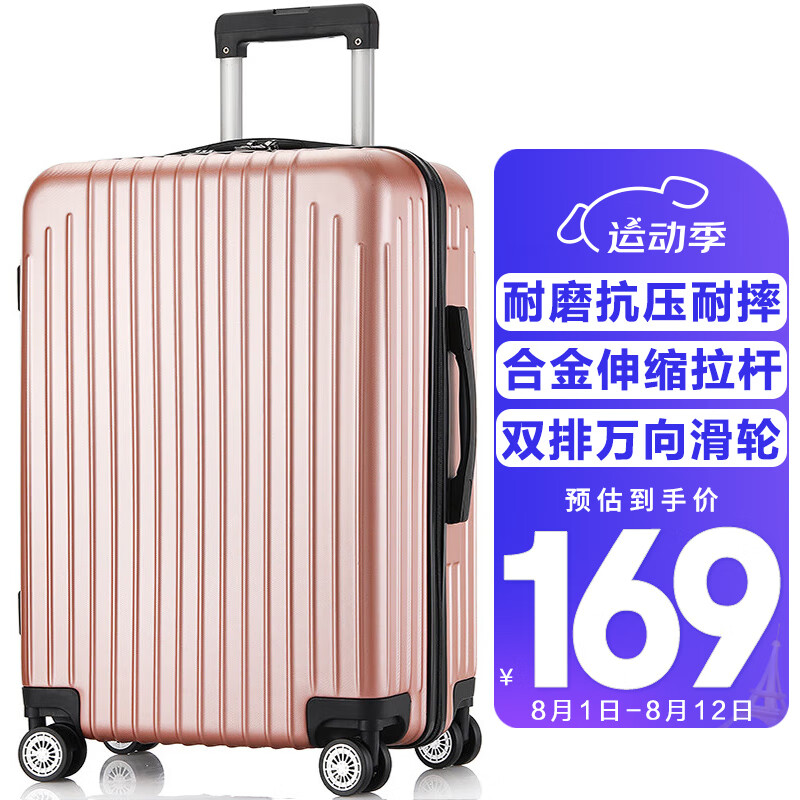 梵地亚行李箱男大容量24英寸万向轮拉杆箱旅行箱包密码箱女皮箱子玫瑰金价格:169.00元!