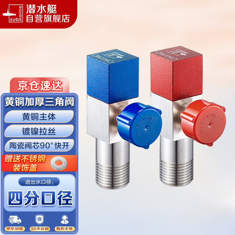 潜水艇(Submarine)F301/2黄铜加厚三角阀八字阀陶瓷阀芯红蓝标国标4分进出水1冷+1热价格:75.00元!