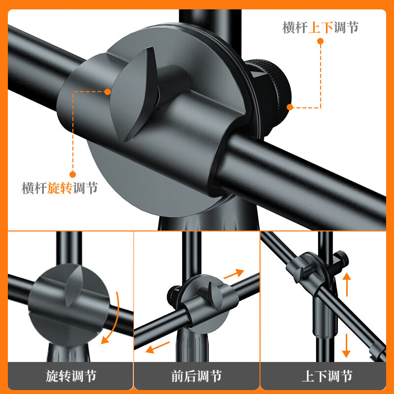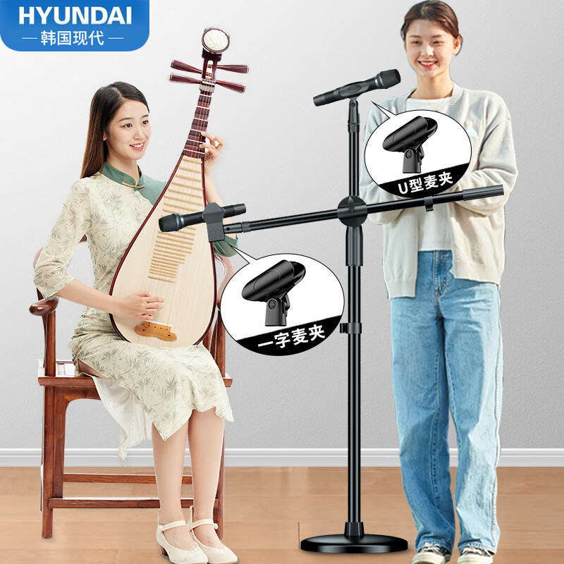 HYUNDAI 现代 ZJ09 麦克风话筒支架话筒架 麦架落地直播钢管管体伸缩录音舞台支架设备配咪夹价格:129.90元!