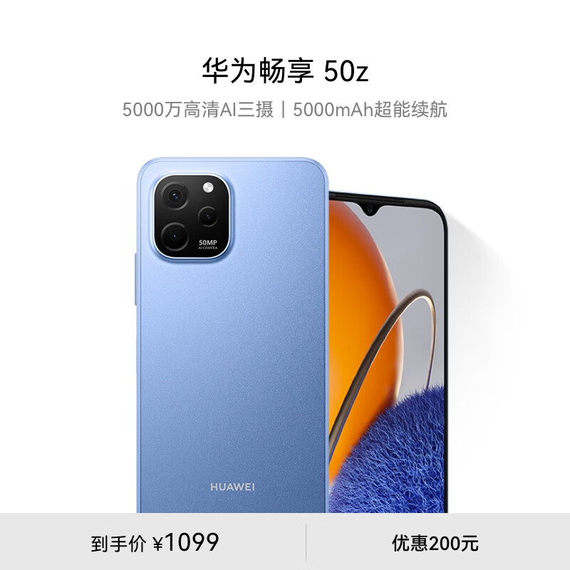 华为畅享 50z 5000万高清AI三摄 5000mAh超能续航 8G+128GB 宝石蓝 大内存鸿蒙智能手机价格:1299.00元!