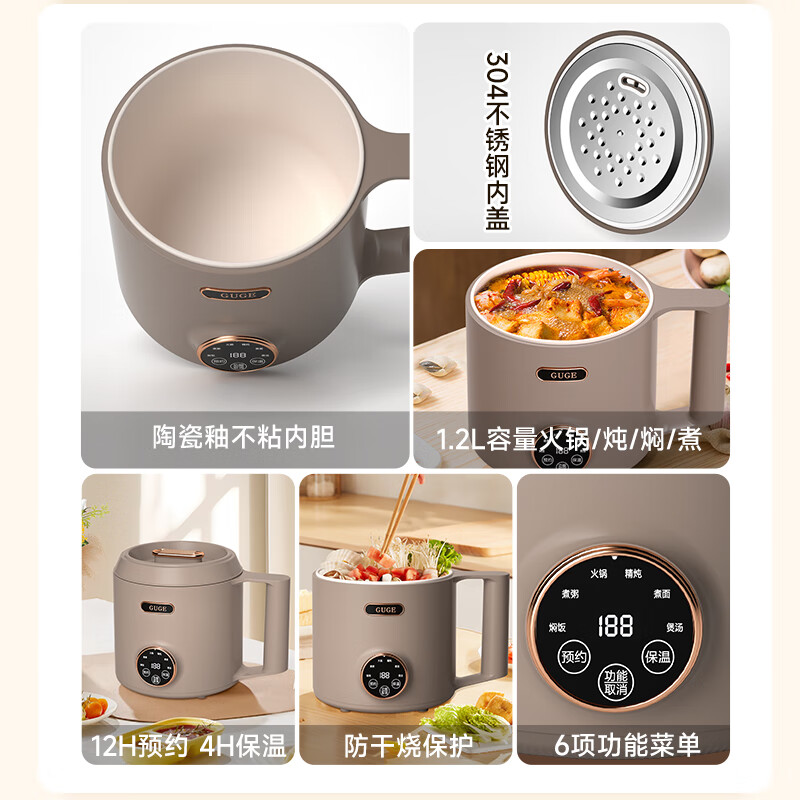 谷格(GUGE)德国电煮锅宿舍泡面锅多功能焖炖煮一体 小型迷你1-2人 插电速食电热锅便携式单人小电锅1.2LGG599 单人小电锅|宿舍煮面锅|GG599| 1.2L价格:219.00元!