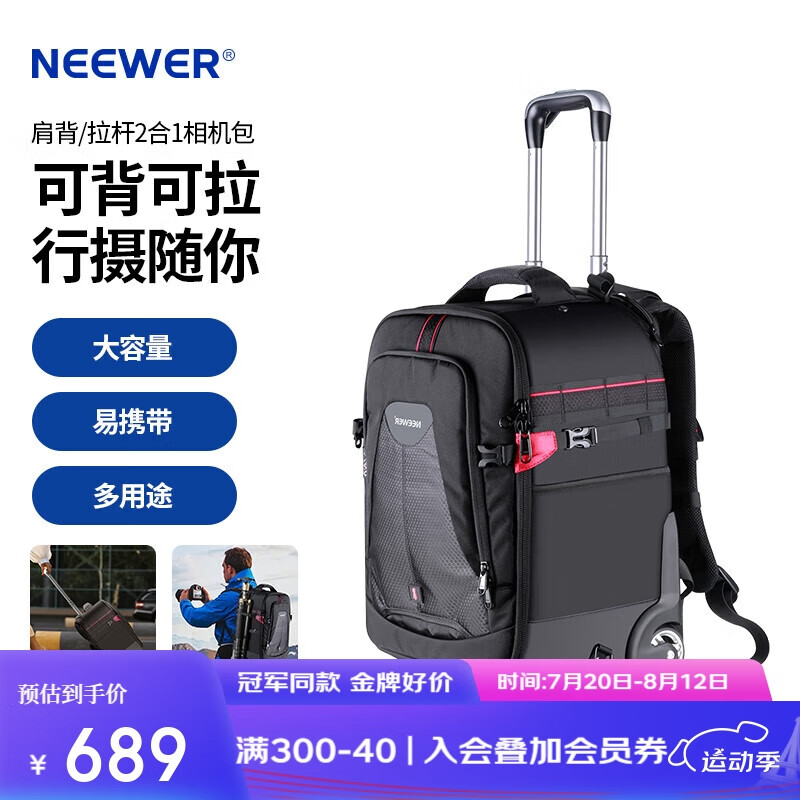 纽尔(NEEWER)NW-DA410T拉杆箱相机包双肩包带滚轮大容量专业摄影器材箱户外旅行摄影包单反包相机防水防潮防震价格:729.00元!