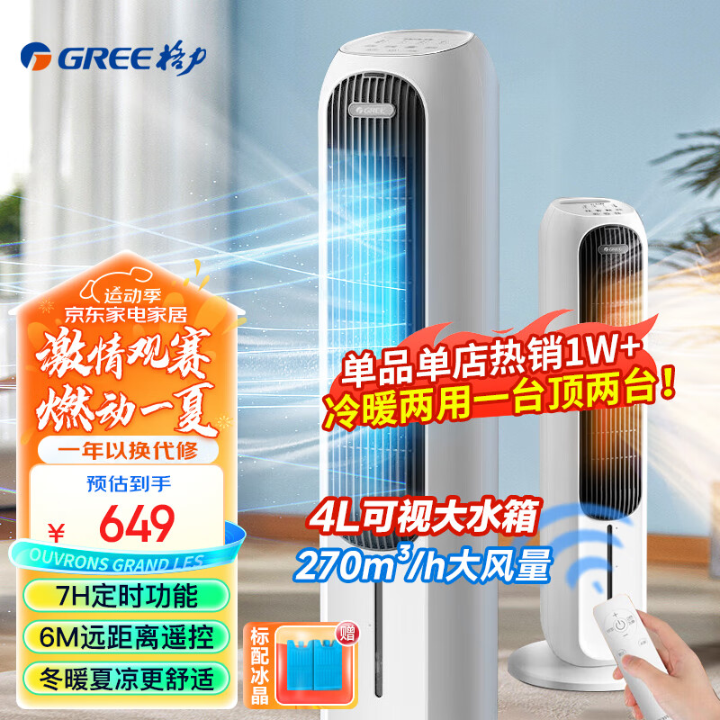 格力(GREE)【冷暖两用】家用空调扇净化加湿冷风扇水冷塔扇节能遥控制冷小型无叶风扇落地冷风机 KS-04X71RDg价格:699.00元!