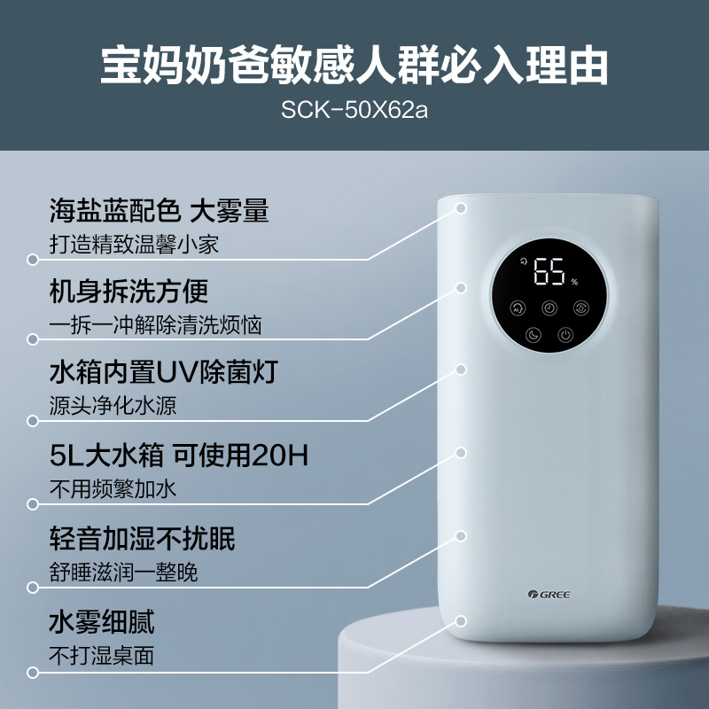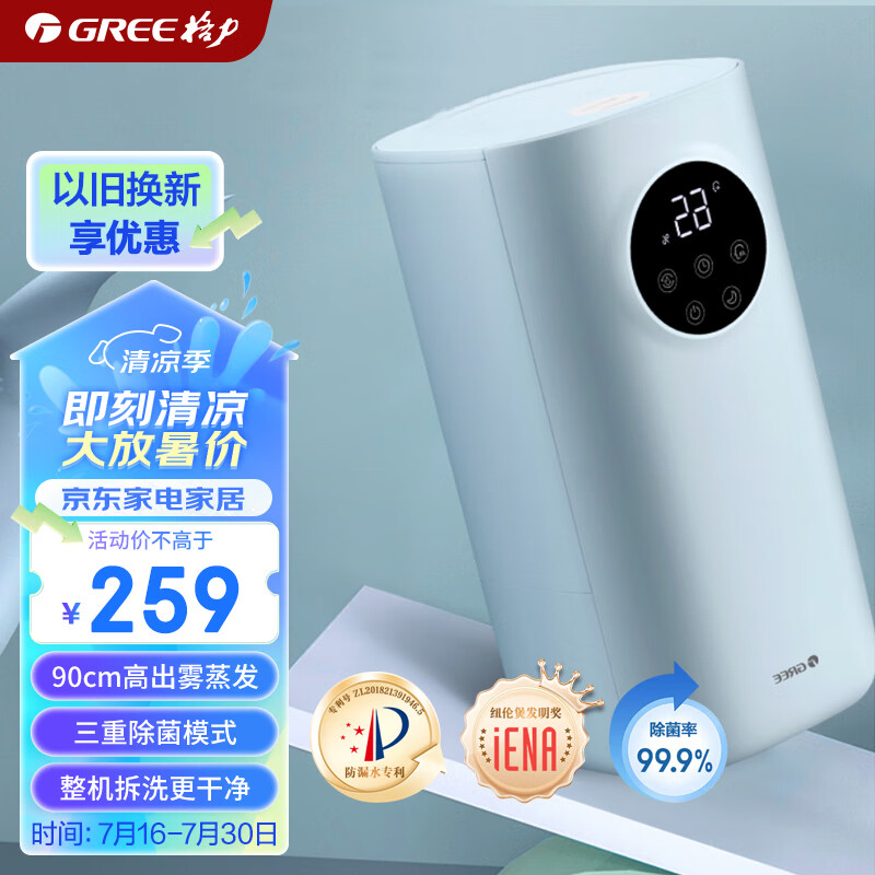 格力(GREE)加湿器静音卧室 UV除菌整机拆洗婴儿孕妇空气加湿器桌面立式 家用办公室大雾量 空调伴侣(50x62a)价格:249.00元!