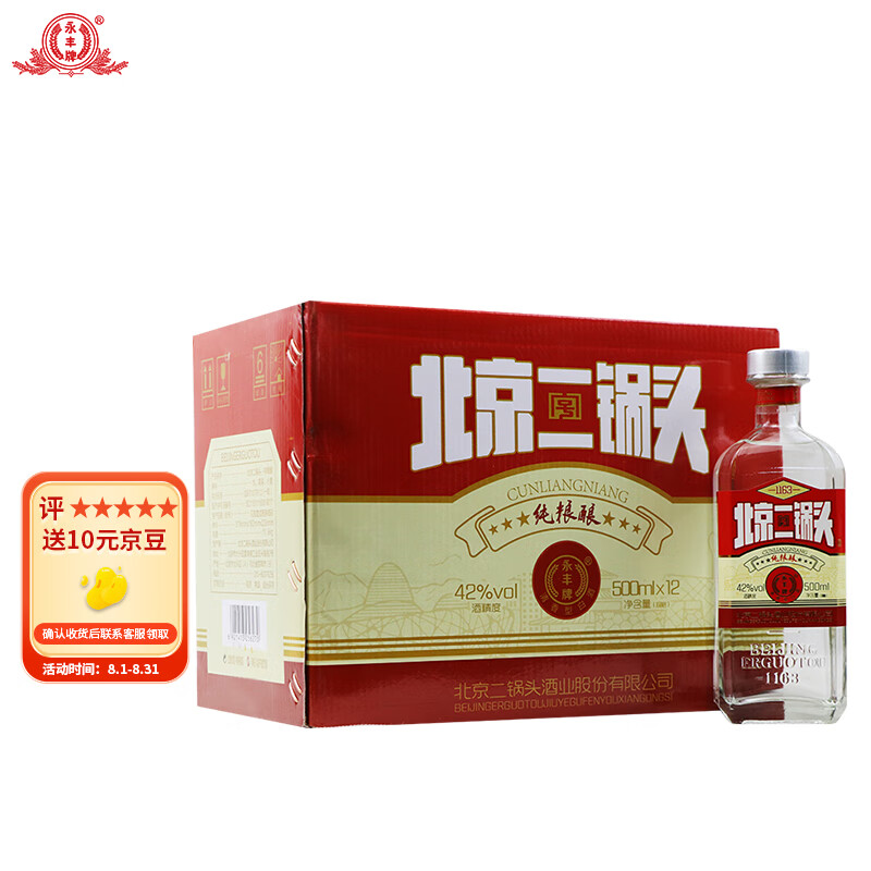 永丰牌北京二锅头小方瓶红标42度500ml*12瓶纯粮酿白酒整箱价格:239.00元!