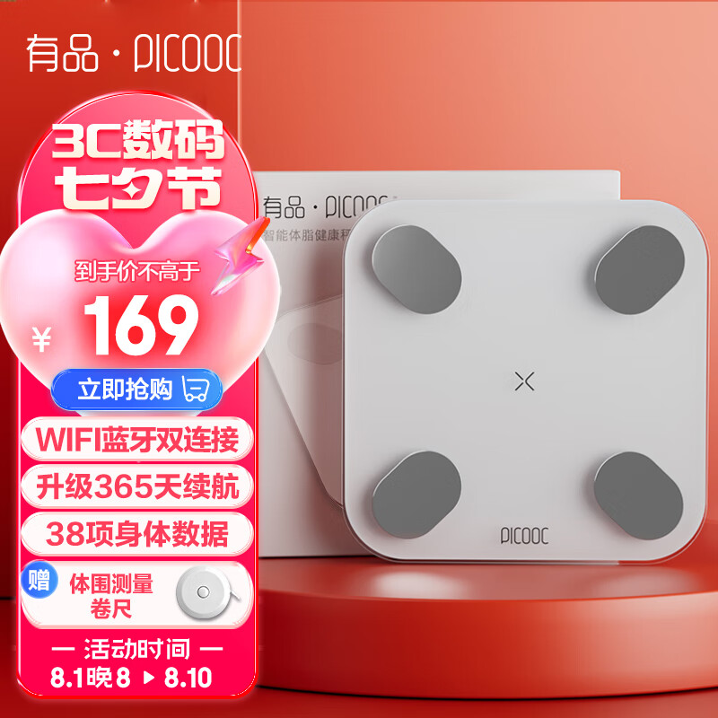 PICOOC有品智能体脂秤电子体重秤家用高精准人体健康脂肪称蓝牙wifi连接BigPro-W送男女友爸妈生日礼物价格:239.00元!