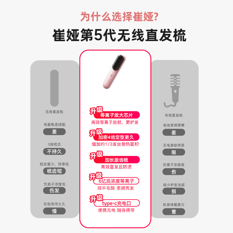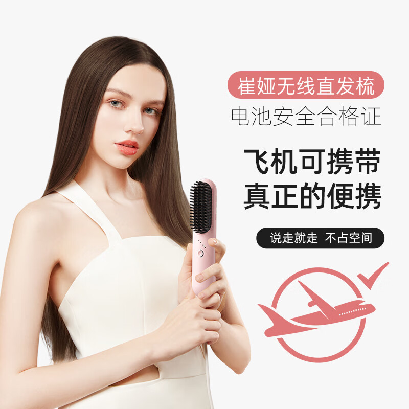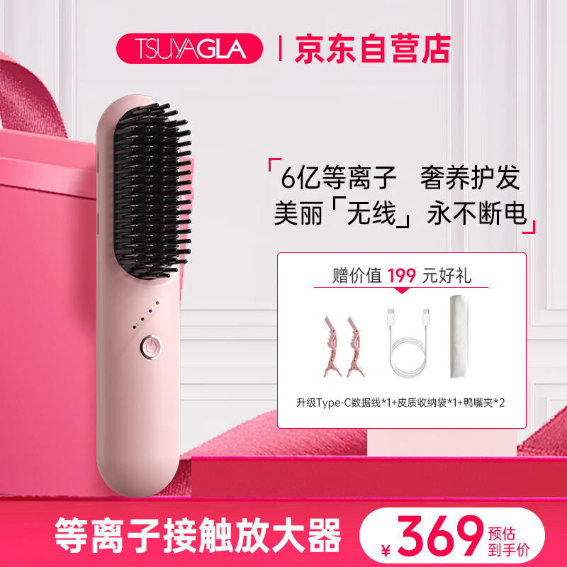 崔娅(TSUYAGLA)第5代无线直发梳 负离子护发便携两用持久造型美发梳直板夹生日礼物送女生T603粉色价格:429.00元!