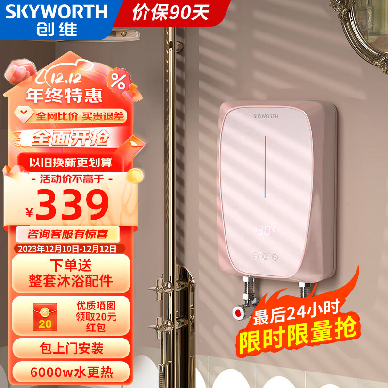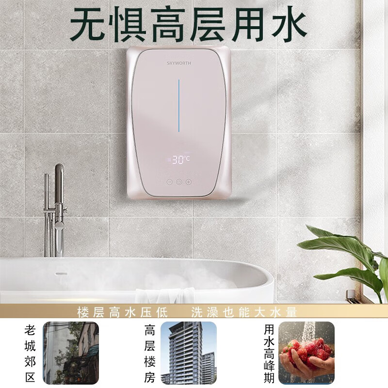 创维(Skyworth)即热式电热水器 速热式家用小型恒温淋浴免储水变频恒温淋浴机多功率可调D805玫瑰金6000W价格:489.00元!