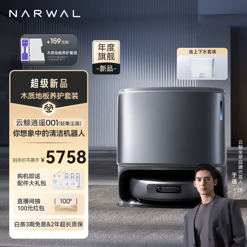 云鲸扫地机器人逍遥001(轻集尘款)上下水版+木质地板养护套装价格:5758.00元!