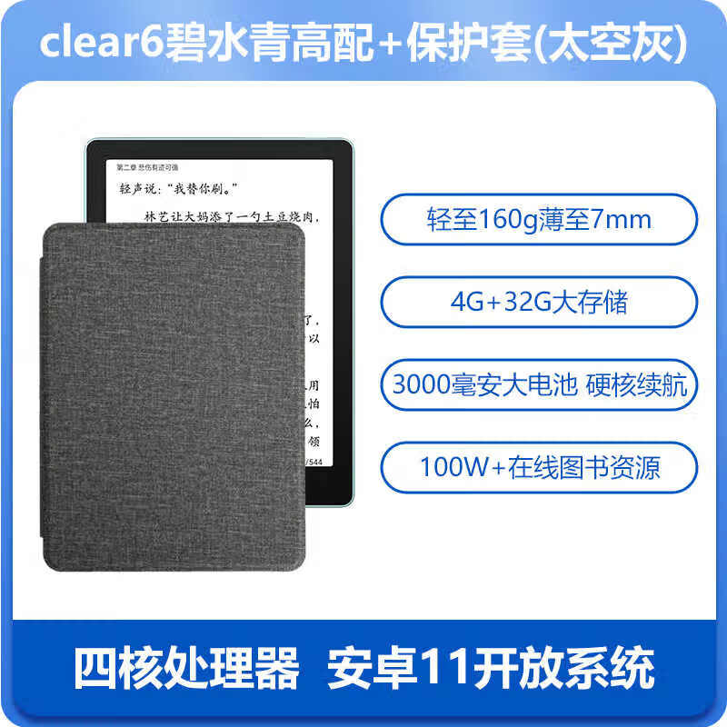 汉王(Hanvon)6英寸电子书阅读器 墨水屏电纸书 智能阅读本电子纸 碧水青4+32G款+太空灰保护套.套装价格:868.00元!