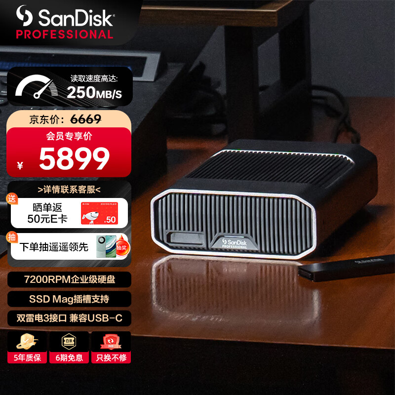 闪迪大师极客 致捷12TB 企业级桌面移动硬盘机械硬盘 雷电3兼容USB Type-C 3.5英寸大容量读写速度250MB/S价格:5899.00元!