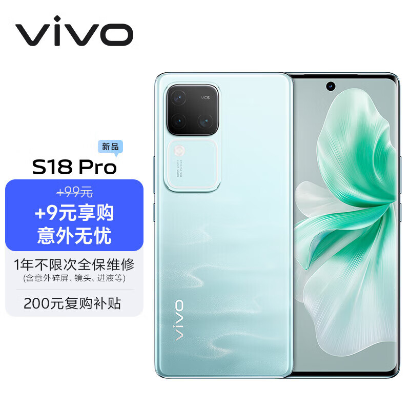vivo S18 Pro 16GB+512GB 青澈【意外无忧套装】天玑9200+旗舰芯片 后置影棚级柔光环 5000mAh电池 手机价格:3708.00元!