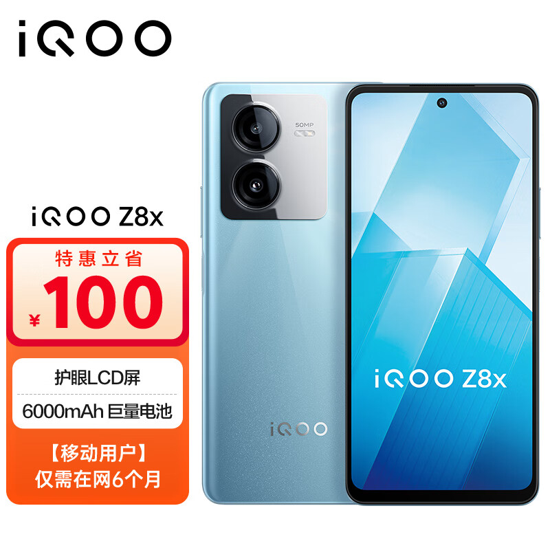 vivo iQOO Z8x 12GB+256GB 星野青 6000mAh电池 骁龙6Gen1 LCD屏 5G手机 通 【移动用户惠享】价格:1299.00元!