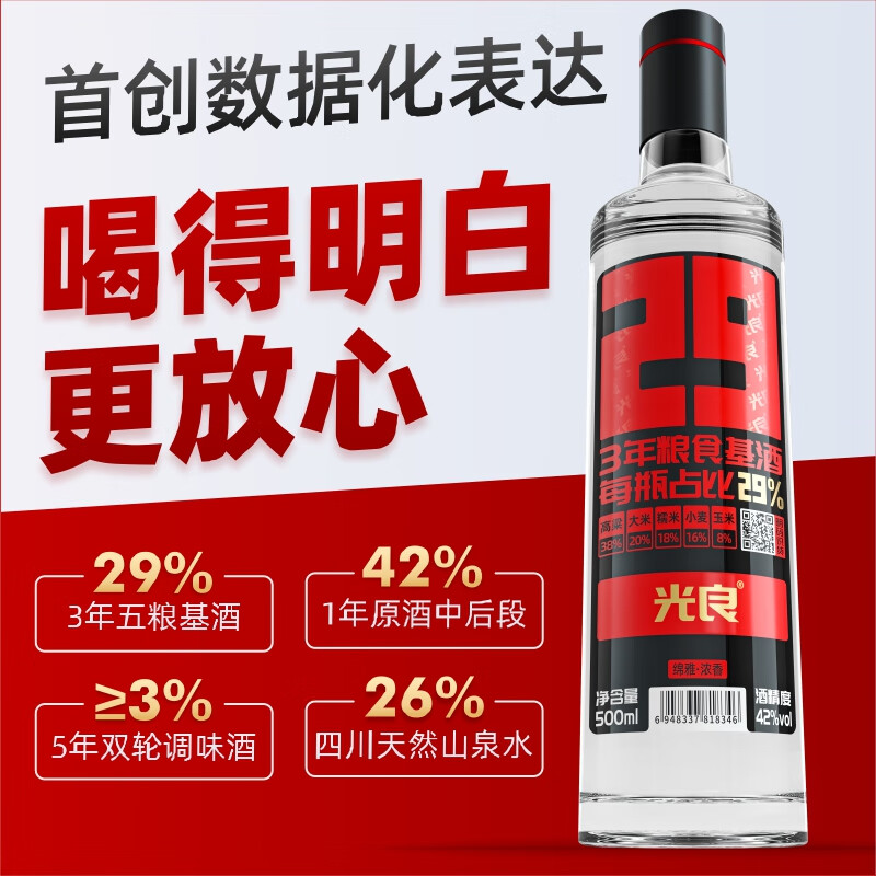 光良 数据瓶 29系列 42度 500ml*6瓶 整箱装 浓香型 光瓶白酒价格:268.00元!