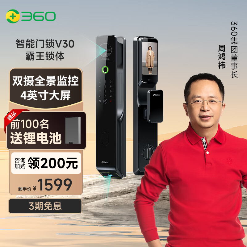 360智能门锁V30【霸王锁体】指纹锁密码锁家用智能锁电子锁入户门 双摄像头大屏 可视猫眼远程解锁价格:1999.00元!