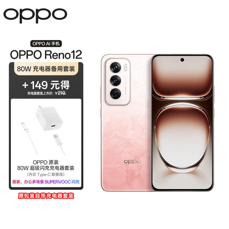 OPPO Reno12 12GB+256GB 柔和桃 超美小直屏 天玑8250星速版旗舰芯拍照手机【80W原装充电器备用套装】价格:2848.00元!