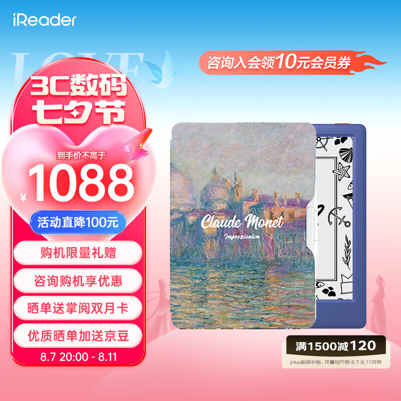 掌阅iReader Neo2 6英寸 电子书阅读器 墨水屏电纸书 平板笔记本 轻量便携32GB 海岛蓝 莫奈运河·套装价格:1088.00元!
