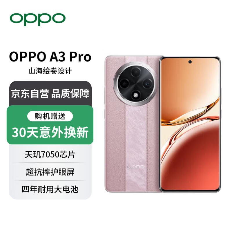 OPPO A3Pro新品5G满级防水 四年耐用大电池12GB+512GB云锦粉 护眼屏AI OPPO手机价格:2399.00元!