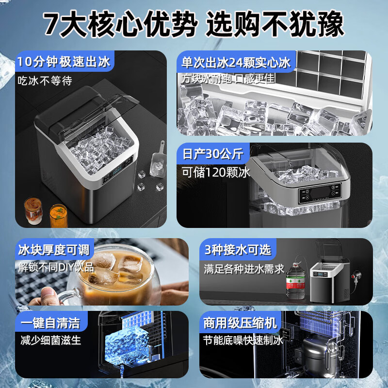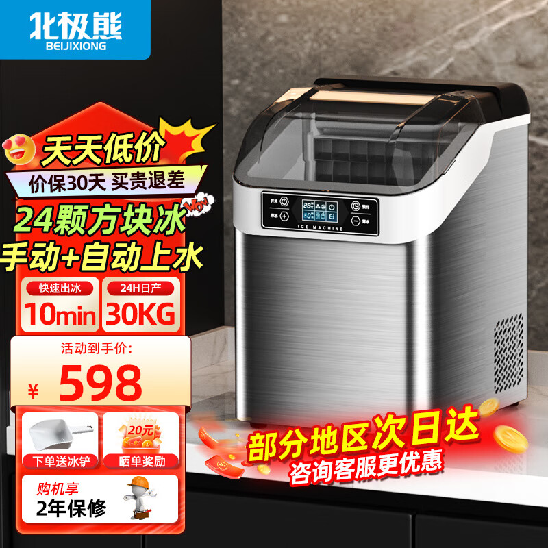 北极熊(BEIJIXIONG)制冰机商用奶茶店台式家用小型方冰全自动24冰格 日产30KG丨24大冰格丨两用价格:698.00元!