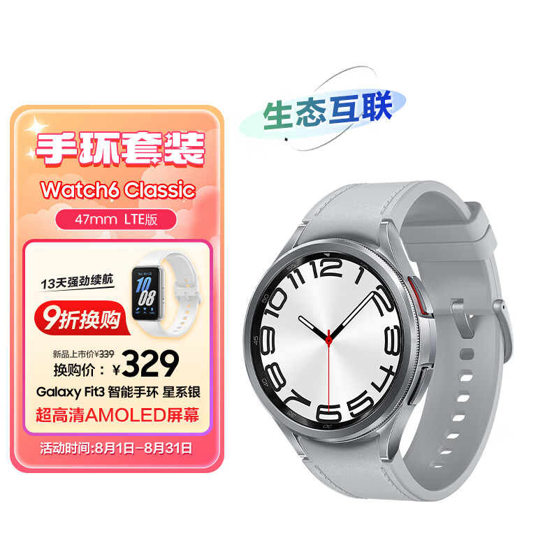 三星Galaxy Watch6 Classic 蓝牙通话/智能手表/运动电话手表/ECG心电分析 47mm 星系银 男女表价格:3128.00元!