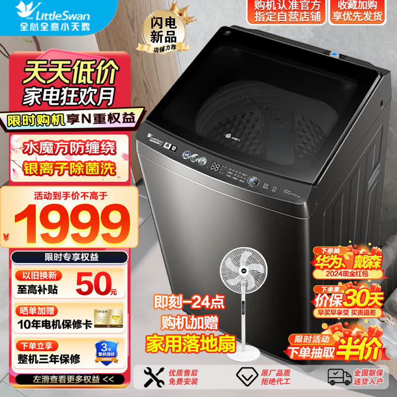 小天鹅(LittleSwan)洗衣机水魔方波轮全自动10公斤大容量防缠绕直驱变频银离子除菌 以旧换新TB100VC180DMT价格:1998.00元!