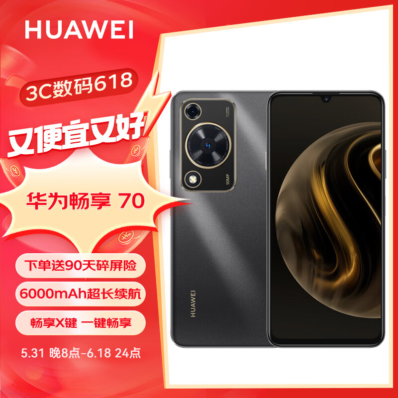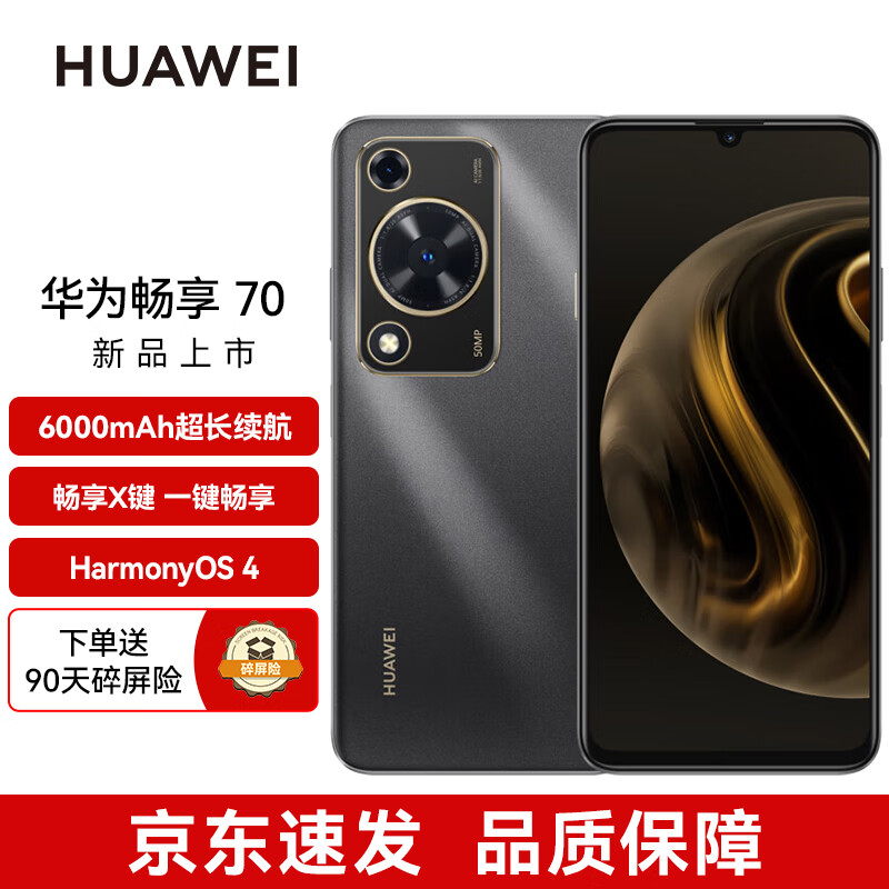 华为/HUAWEI 畅享 70 6000mAh大电池 长续航 畅享X键一键直达 128GB 曜金黑 鸿蒙智能手机价格:919.00元!