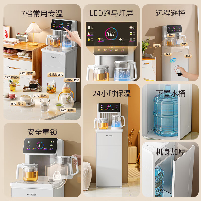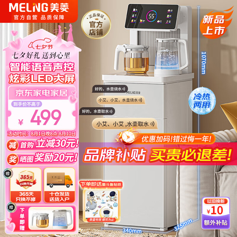 美菱(MeiLing)茶吧机家用制冷制热智能语音遥控立式饮水机下置水桶办公客厅全自动冷热款MY-C912B(语音款)白色价格:529.00元!