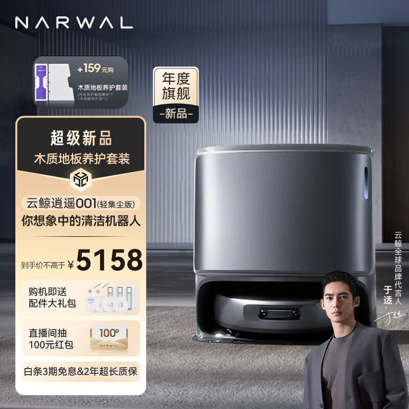 云鲸扫地机器人逍遥001(轻集尘款)+木质地板养护套装价格:5158.00元!