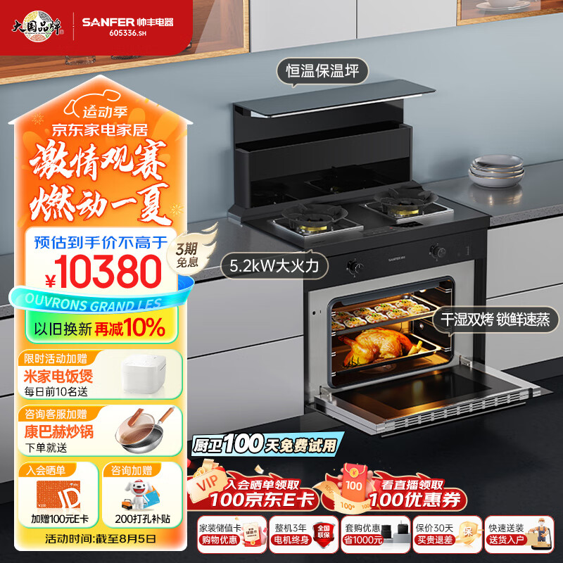 帅丰(SANFER)集成灶一体式 蒸烤箱一体机 家用蒸烤一体变频集成灶 J2-7B 5.2kW猛火燃气灶 天然气价格:10380.00元!