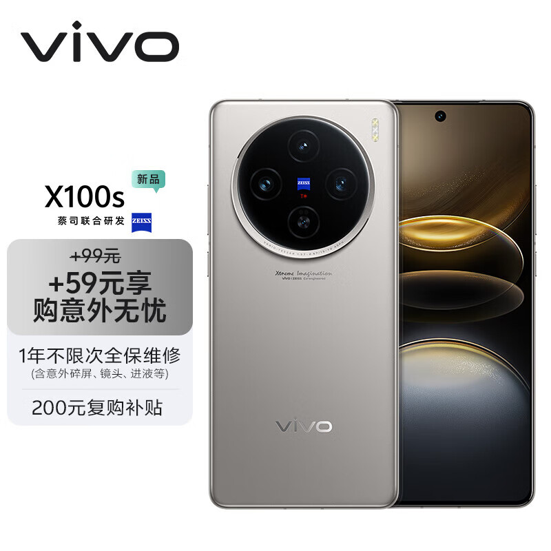 vivo X100s 16GB+256GB 钛色【意外无忧套装】蓝晶×天玑9300+ 蔡司超级长焦 7.8mm超薄直屏 手机价格:4458.00元!