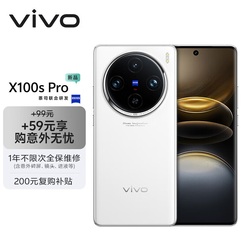 vivo X100s Pro 16GB+512GB 白月光【意外无忧套装】蓝晶×天玑9300+ 蔡司APO超级长焦 拍照 手机 价格:5658.00元!