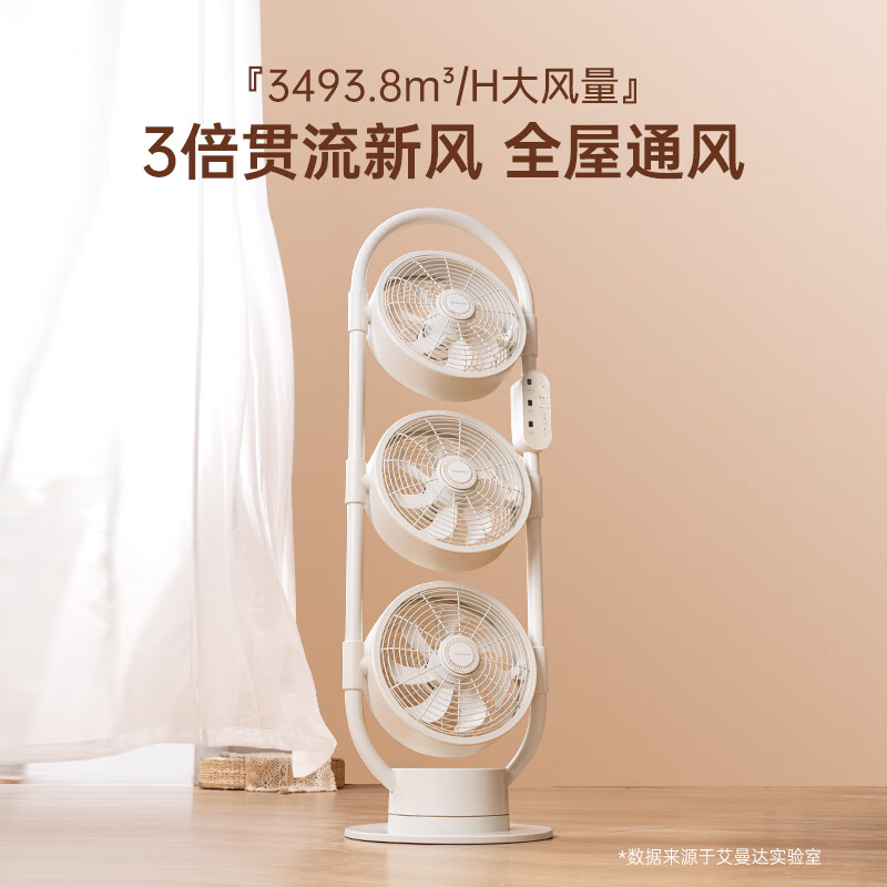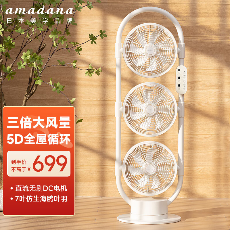 amadana艾曼达三头空气循环扇大风量电风扇立式家用落地扇多头涡轮对流扇 三头风扇C8(5D立体循环)价格:1299.00元!