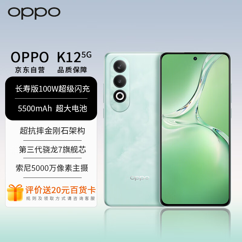 OPPO K12 5G 100W闪充 5500mAh超长续航 第三代骁龙7旗舰芯 直屏新款拍照游戏 AI手机 8GB+256GB 青云价格:1669.00元!